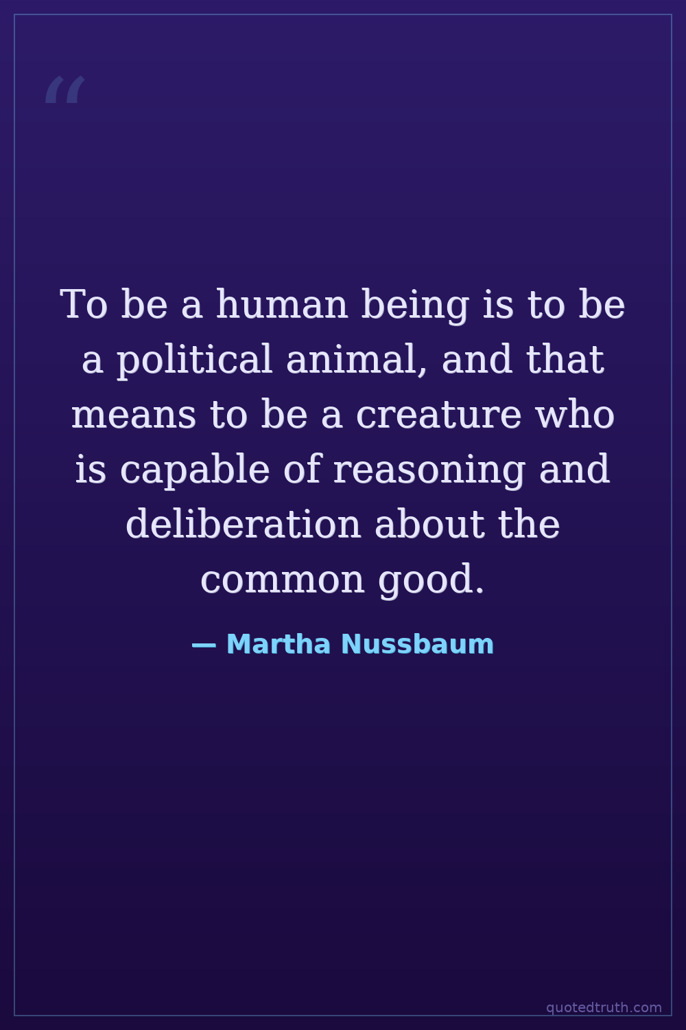 To be a human being is to be a political animal, and that means to be a creature who is capable of reasoning and deliberation about the common good.