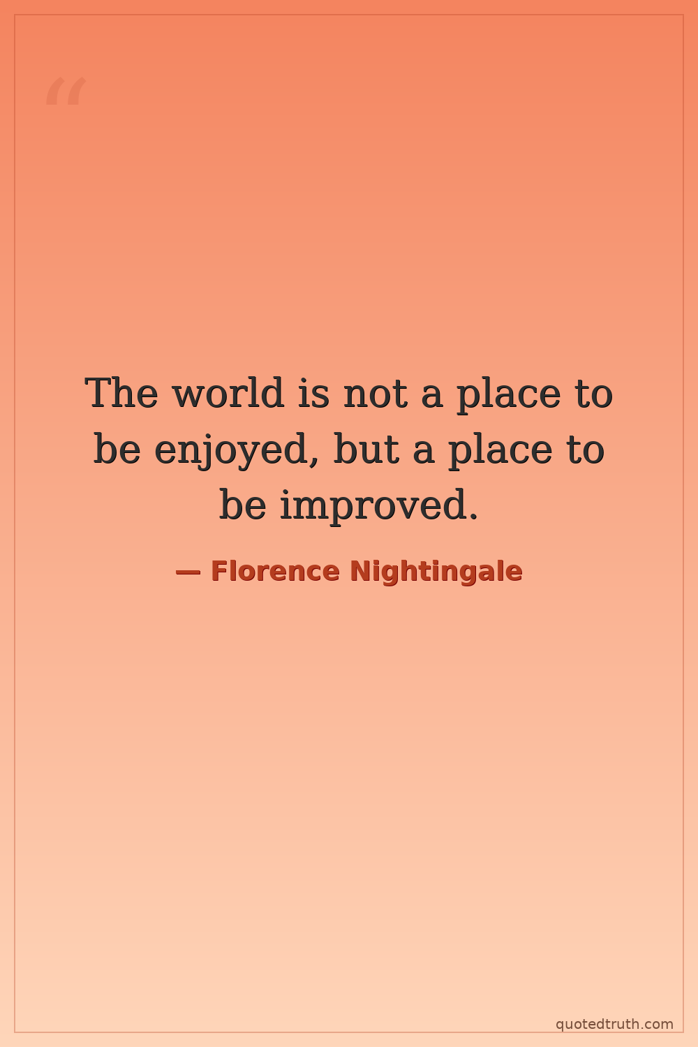 The world is not a place to be enjoyed, but a place to be improved.