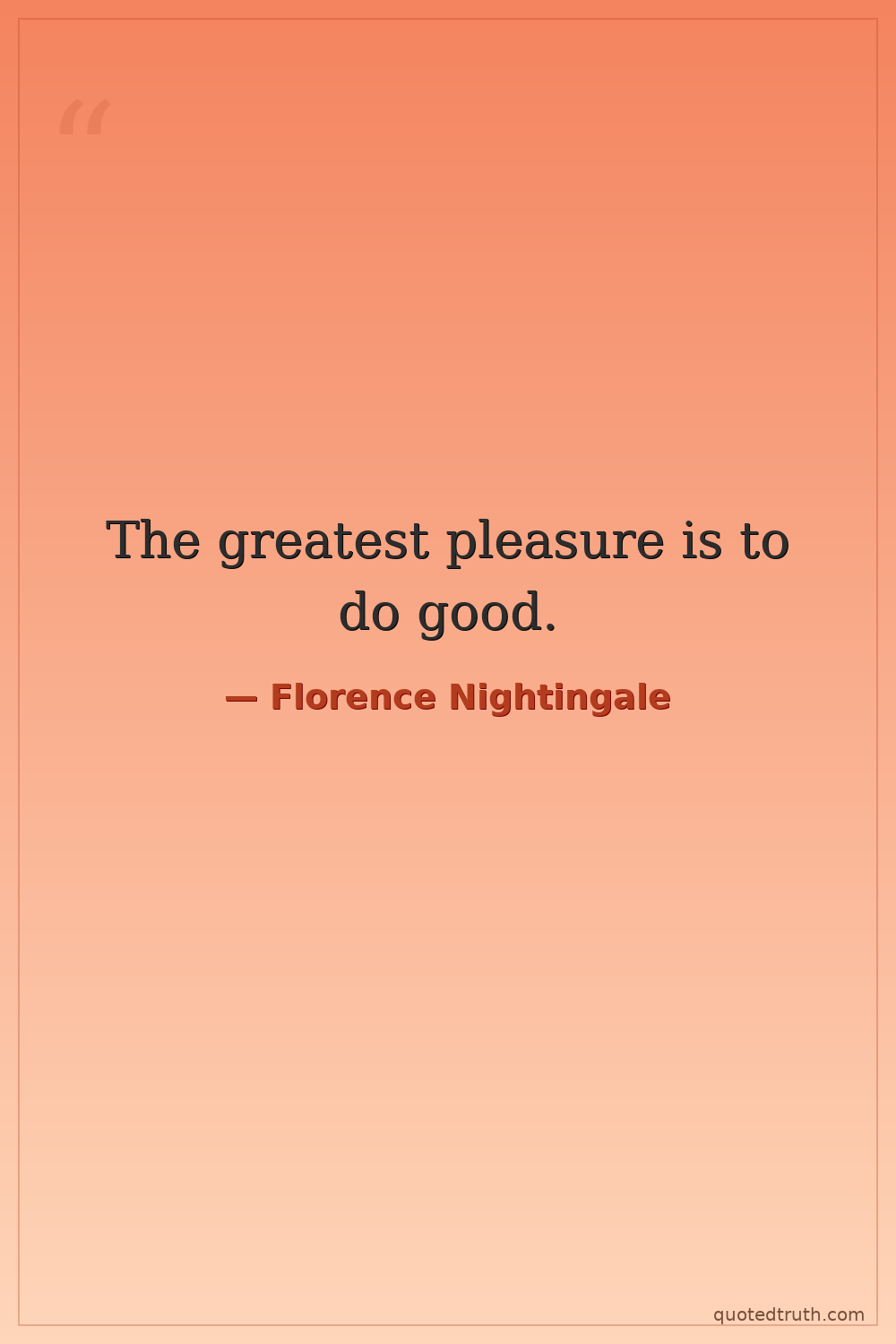 The greatest pleasure is to do good.