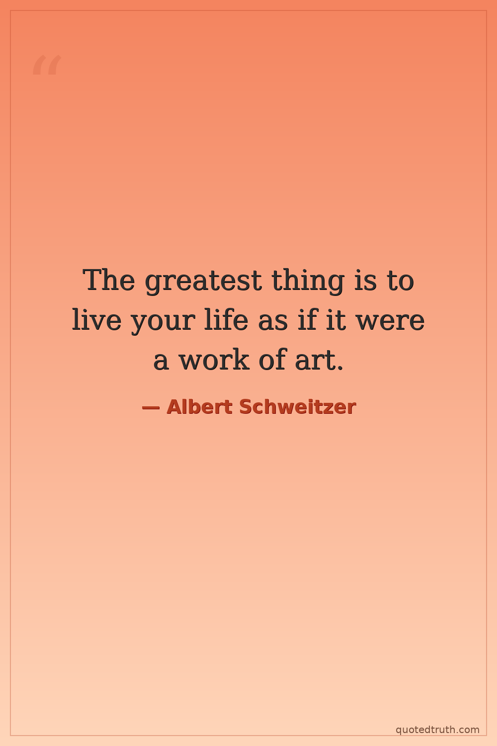 The greatest thing is to live your life as if it were a work of art.