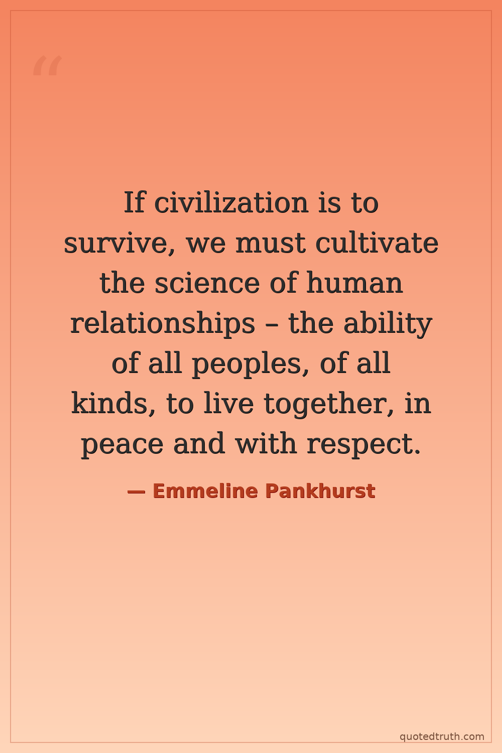If civilization is to survive, we must cultivate the science of human relationships – the ability of all peoples, of all kinds, to live together, in peace and with respect.