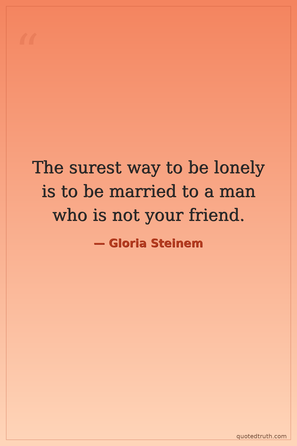The surest way to be lonely is to be married to a man who is not your friend.
