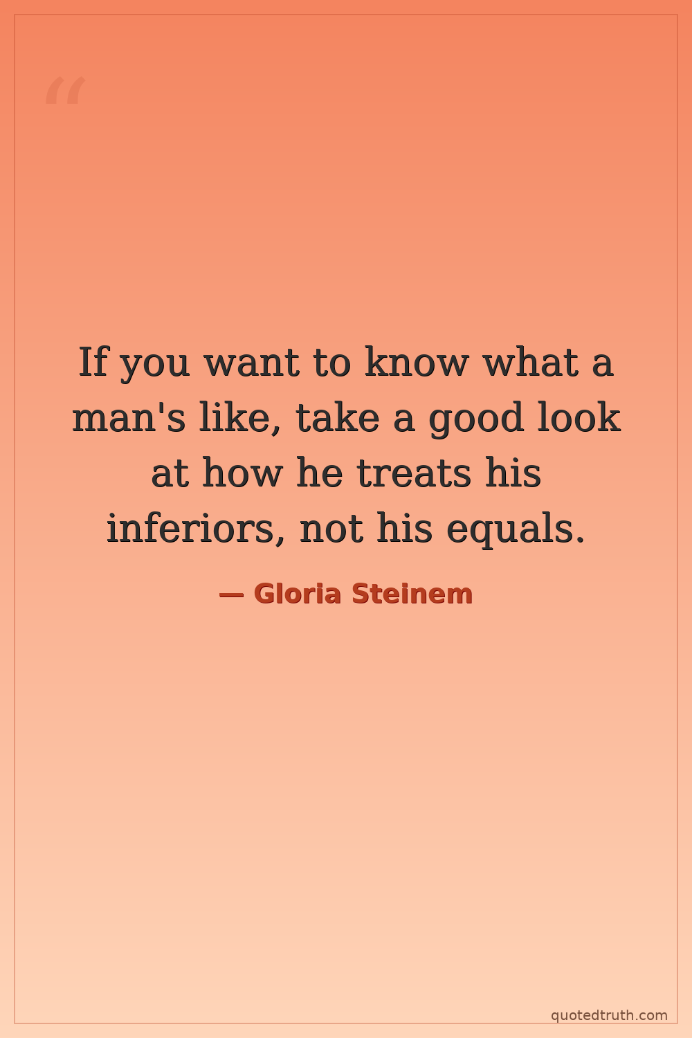 If you want to know what a man's like, take a good look at how he treats his inferiors, not his equals.