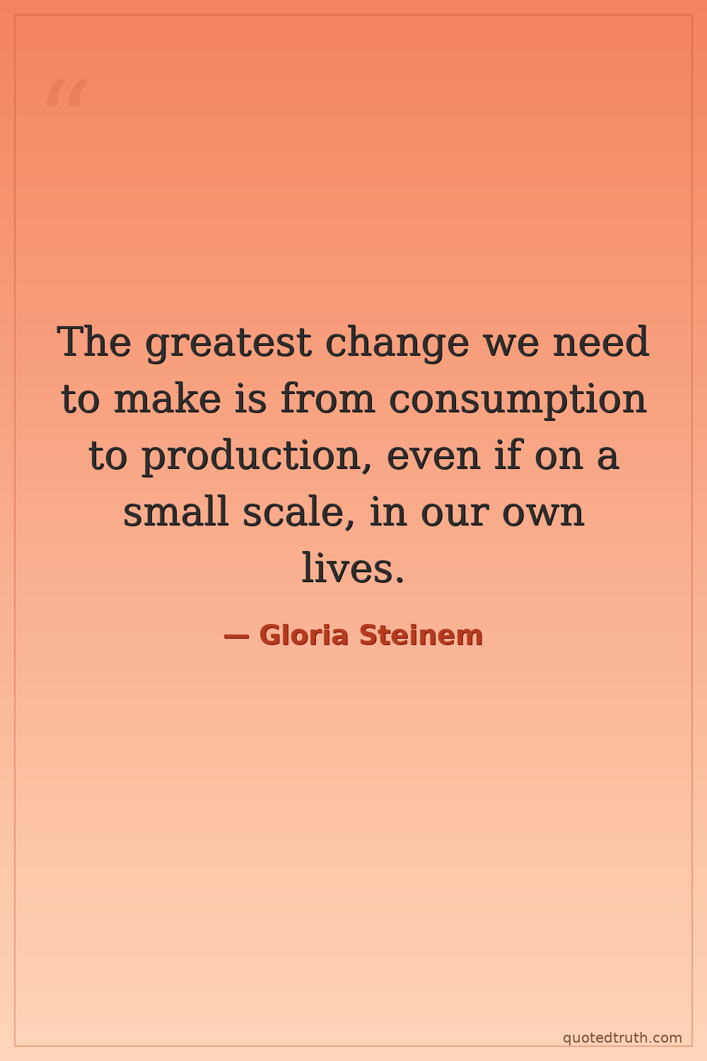 The greatest change we need to make is from consumption to production, even if on a small scale, in our own lives.
