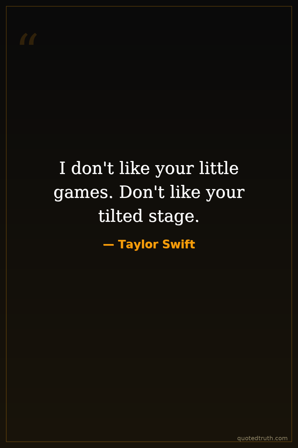 I don't like your little games. Don't like your tilted stage.