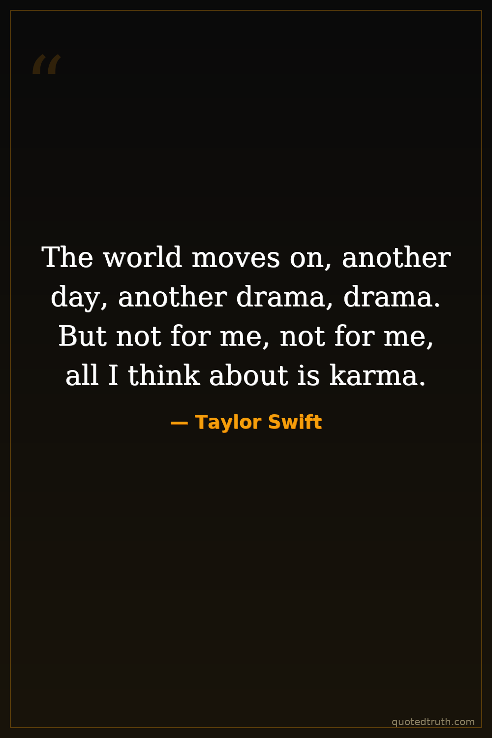 The world moves on, another day, another drama, drama. But not for me, not for me, all I think about is karma.