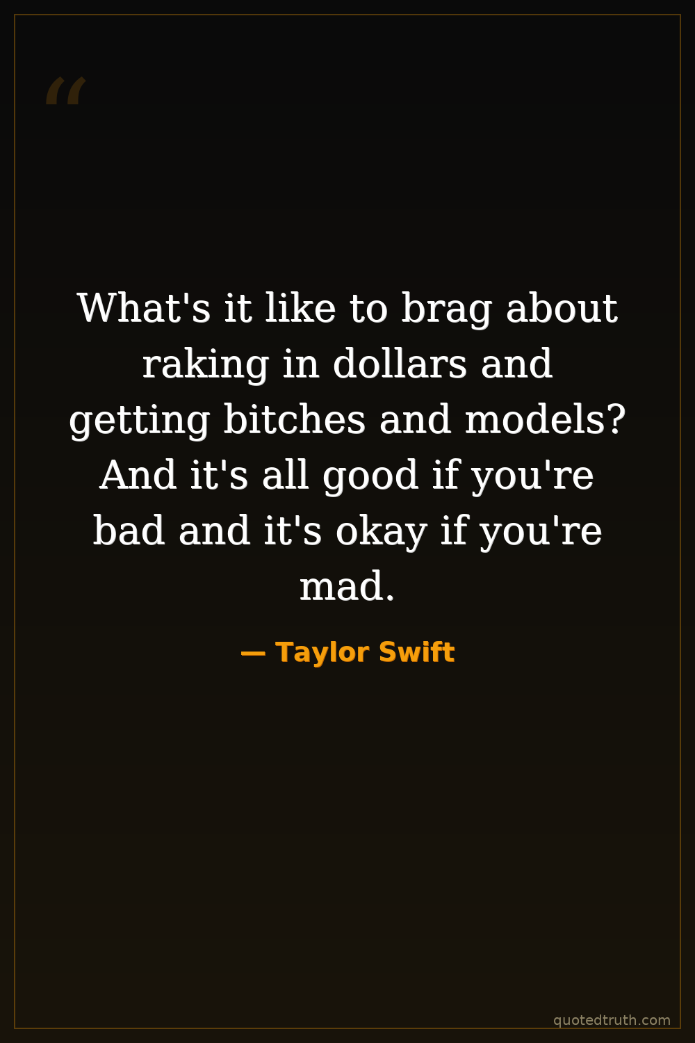 What's it like to brag about raking in dollars and getting bitches and models? And it's all good if you're bad and it's okay if you're mad.