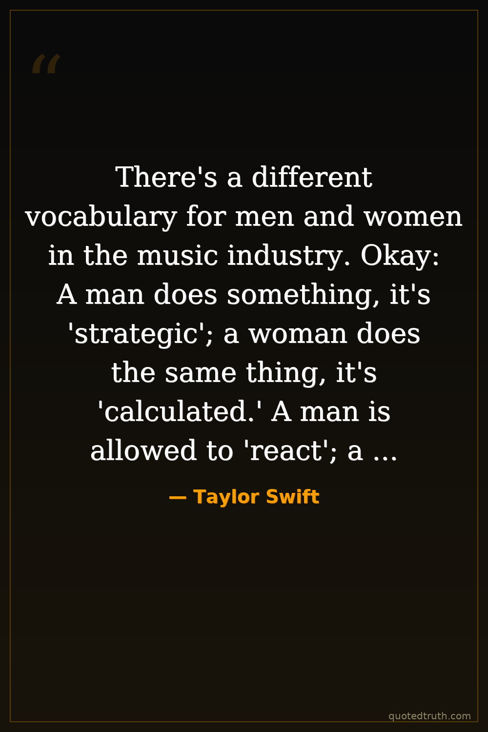 There's a different vocabulary for men and women in the music industry. Okay: A man does something, it's 'strategic'; a woman does the same thing, it's 'calculated.' A man is allowed to 'react'; a woman can only 'over-react.'