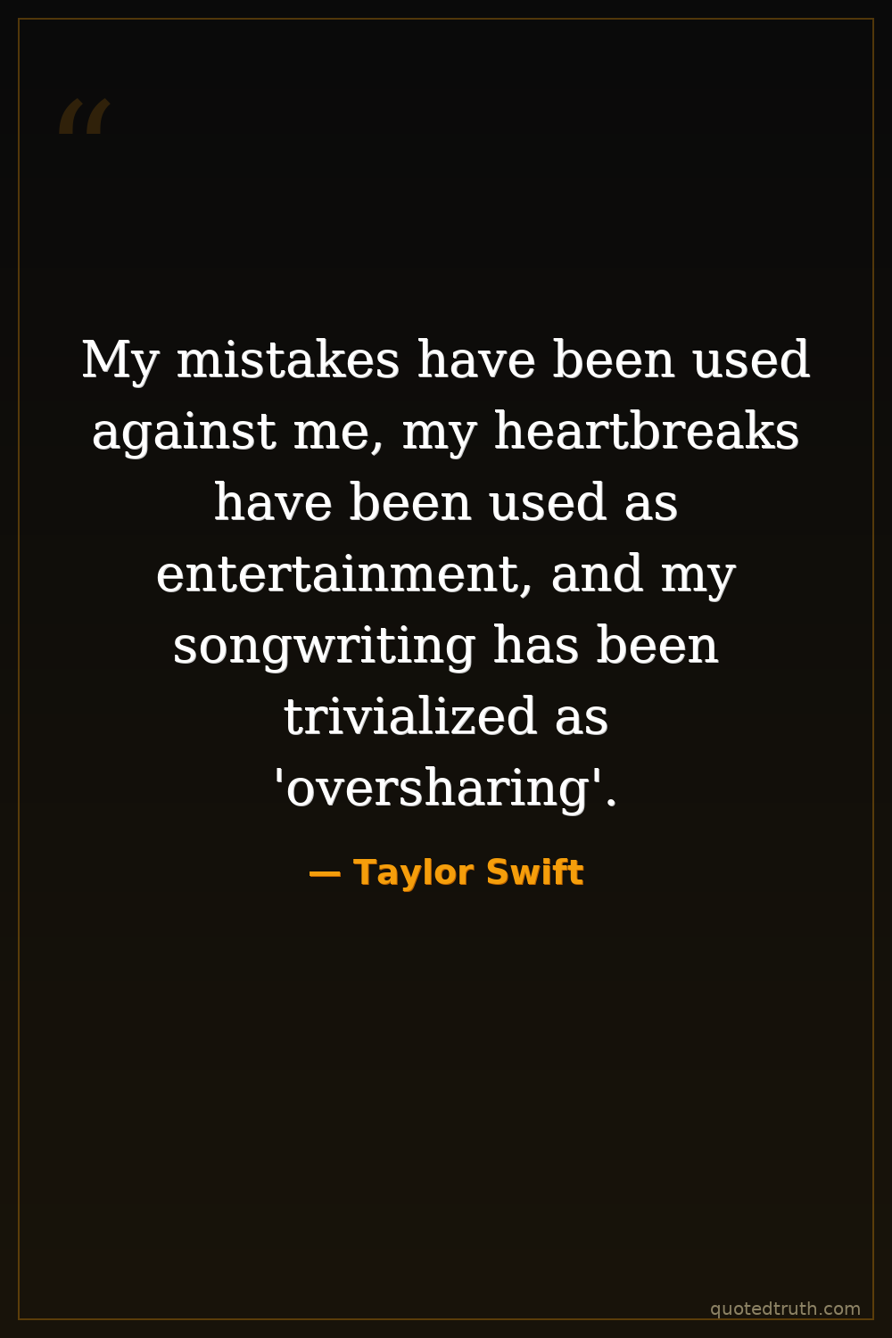 My mistakes have been used against me, my heartbreaks have been used as entertainment, and my songwriting has been trivialized as 'oversharing'.