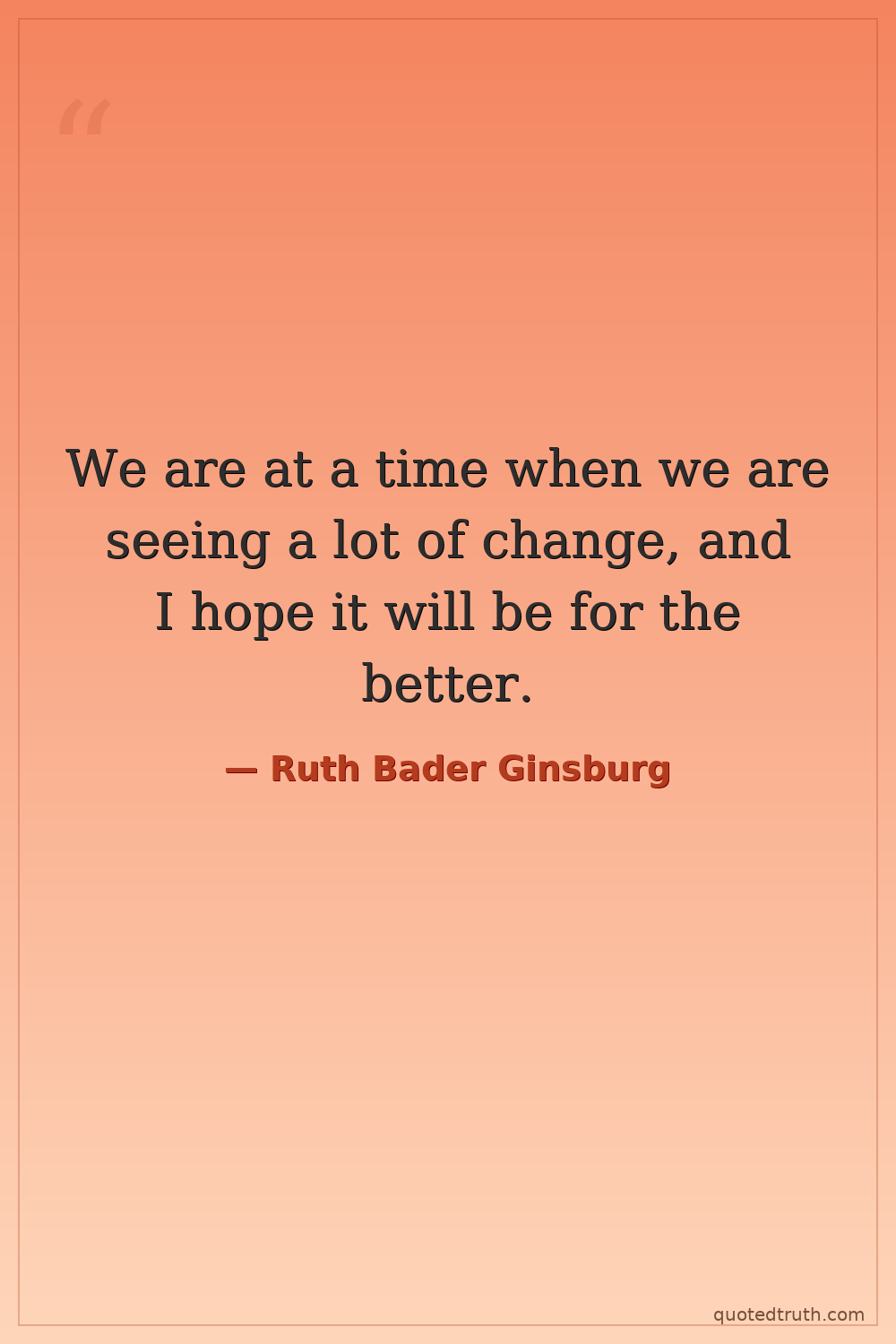 We are at a time when we are seeing a lot of change, and I hope it will be for the better.