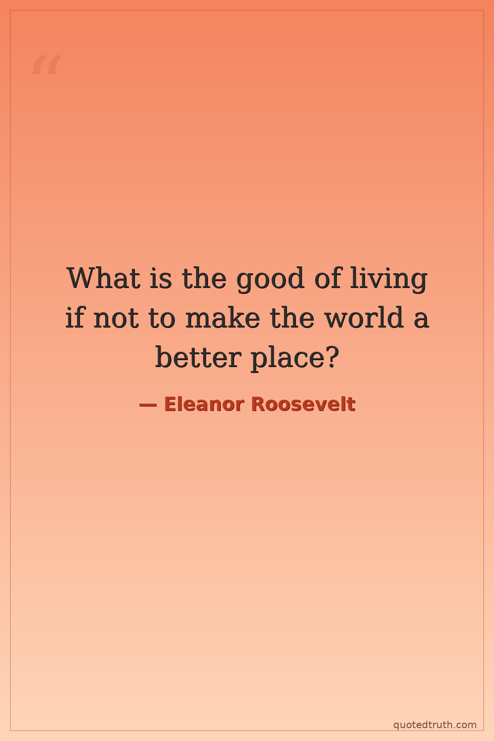 What is the good of living if not to make the world a better place?