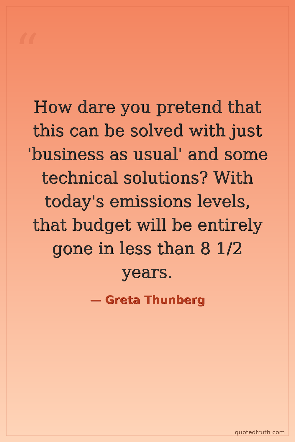 How dare you pretend that this can be solved with just 'business as usual' and some technical solutions? With today's emissions levels, that budget will be entirely gone in less than 8 1/2 years.