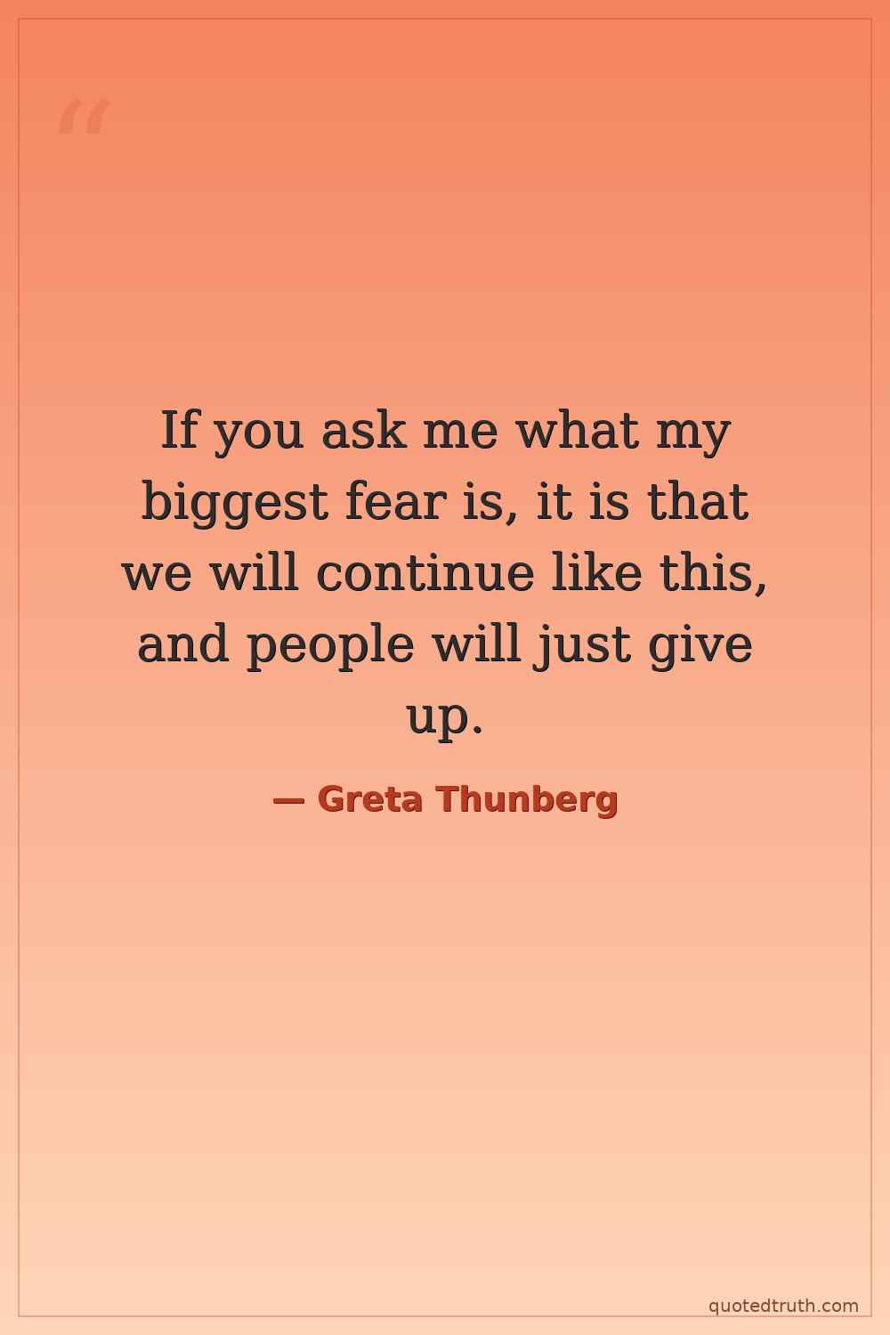 If you ask me what my biggest fear is, it is that we will continue like this, and people will just give up.