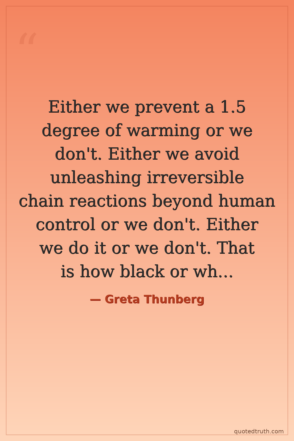 Either we prevent a 1.5 degree of warming or we don't. Either we avoid unleashing irreversible chain reactions beyond human control or we don't. Either we do it or we don't. That is how black or white the issue is.