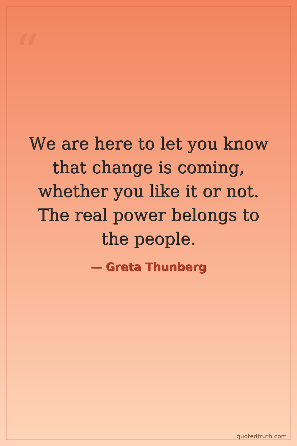 We are here to let you know that change is coming, whether you like it or not. The real power belongs to the people.