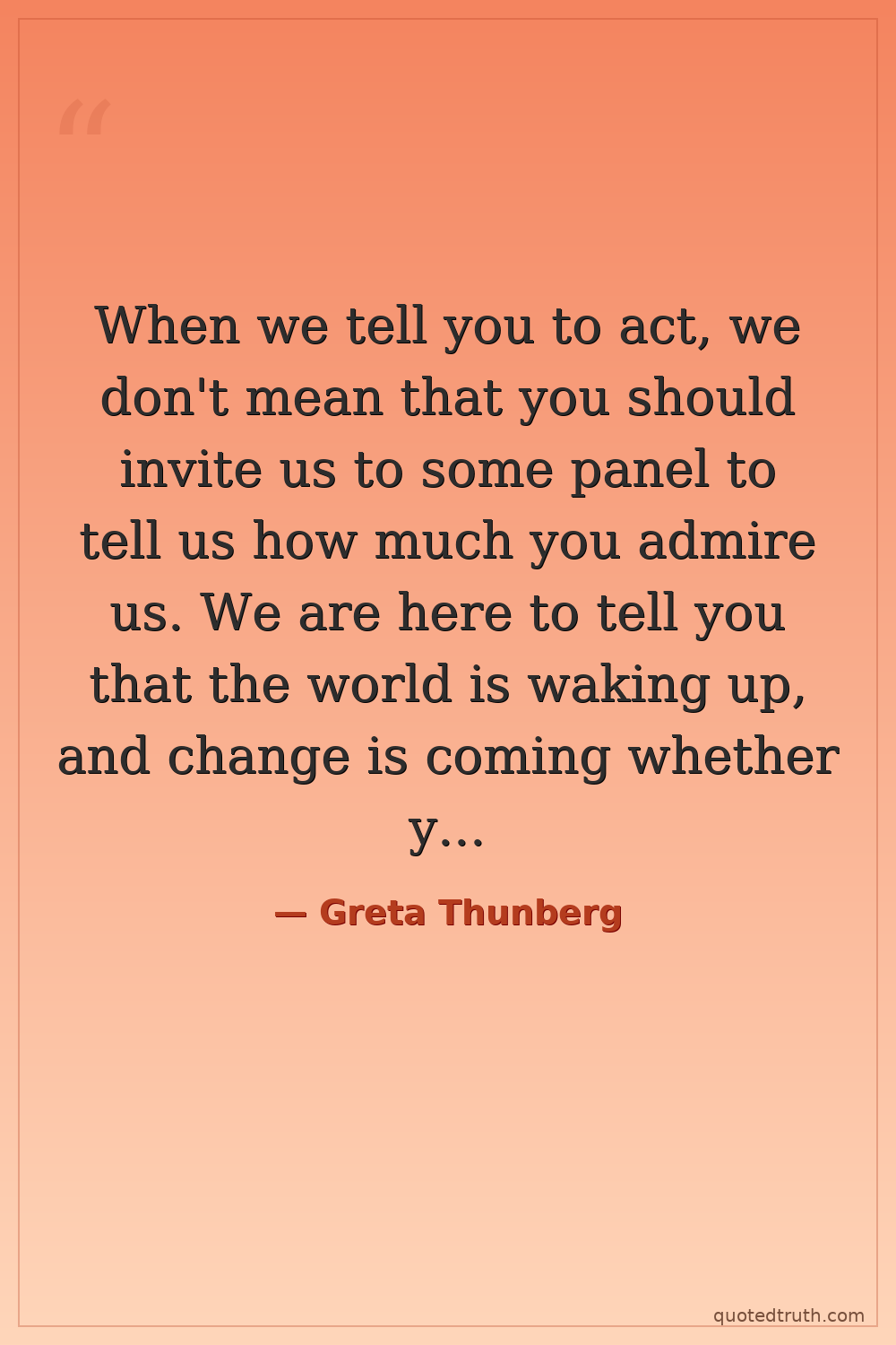 When we tell you to act, we don't mean that you should invite us to some panel to tell us how much you admire us. We are here to tell you that the world is waking up, and change is coming whether you like it or not.
