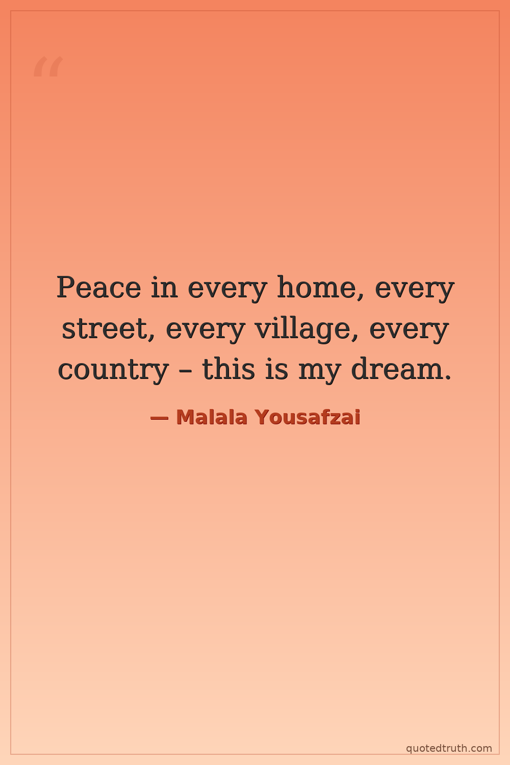 Peace in every home, every street, every village, every country – this is my dream.