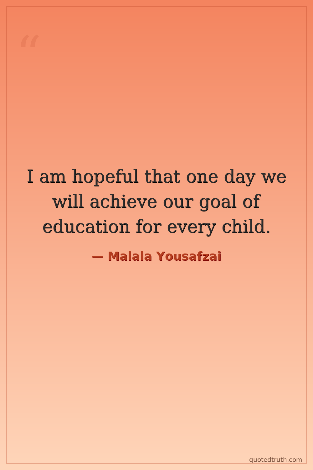 I am hopeful that one day we will achieve our goal of education for every child.