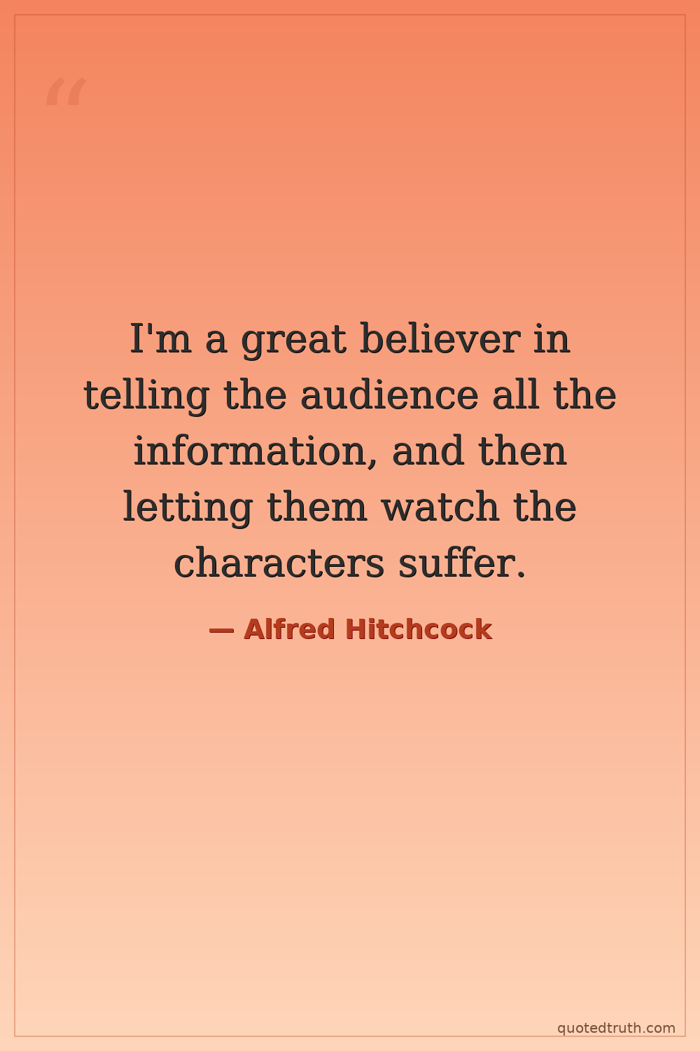 I'm a great believer in telling the audience all the information, and then letting them watch the characters suffer.