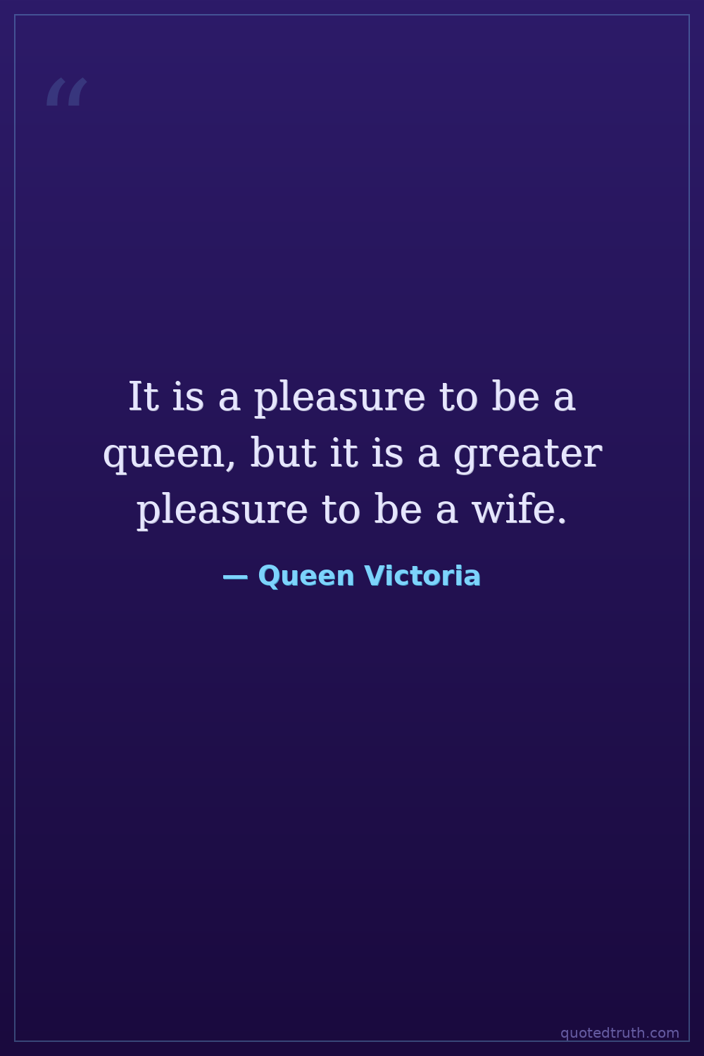 It is a pleasure to be a queen, but it is a greater pleasure to be a wife.