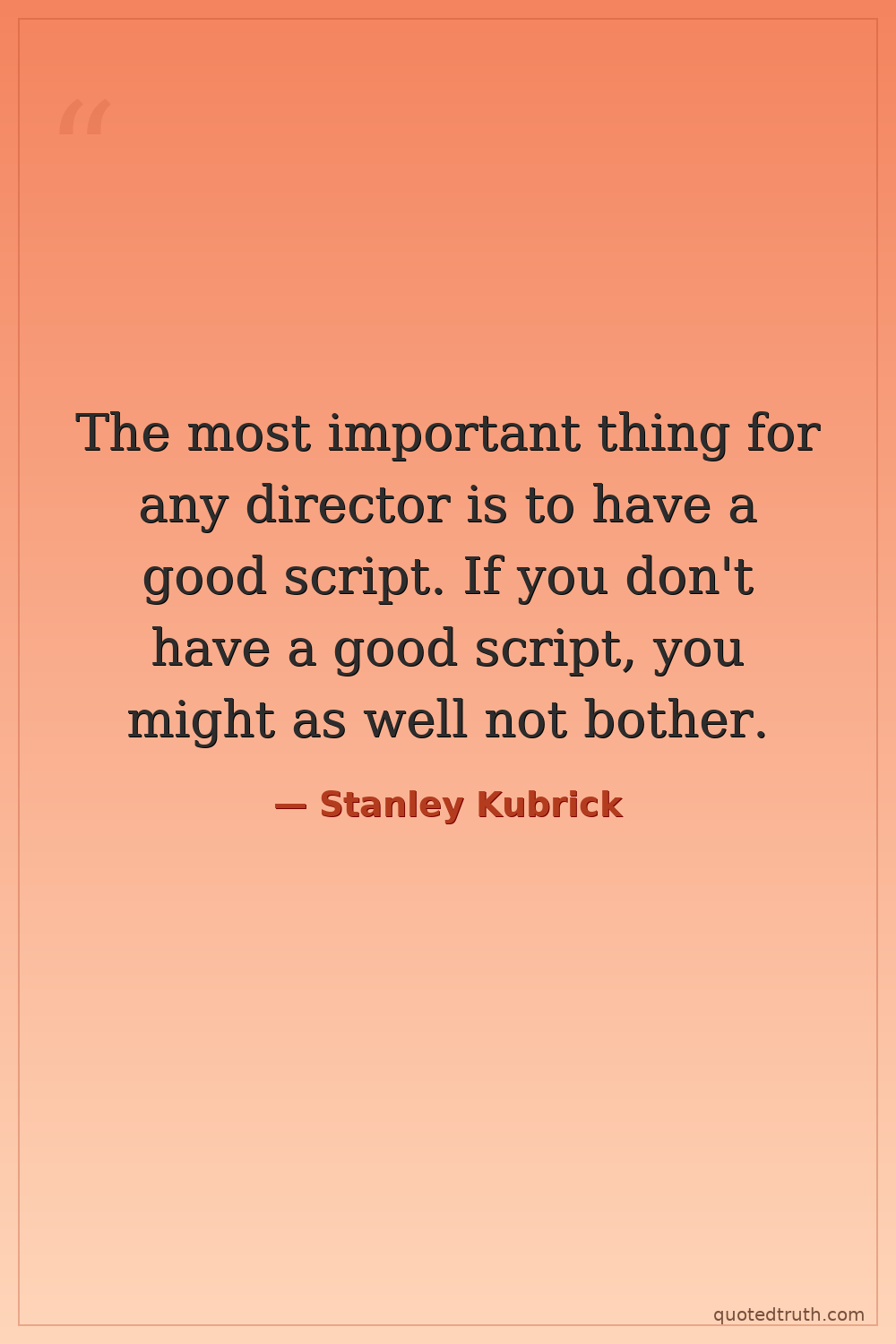 The most important thing for any director is to have a good script. If you don't have a good script, you might as well not bother.