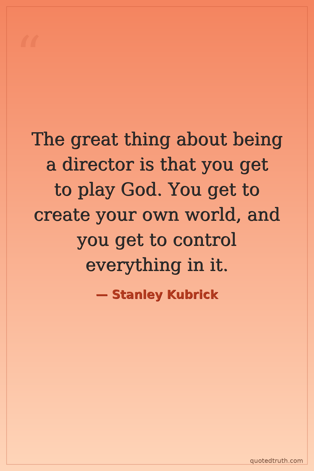 The great thing about being a director is that you get to play God. You get to create your own world, and you get to control everything in it.