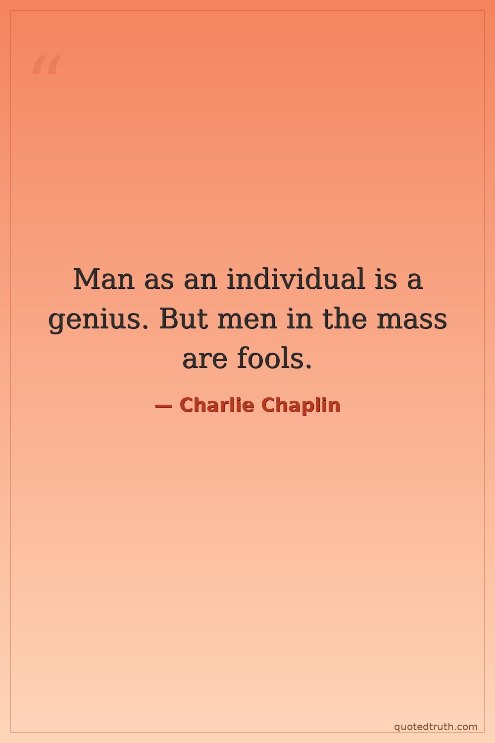 Man as an individual is a genius. But men in the mass are fools.