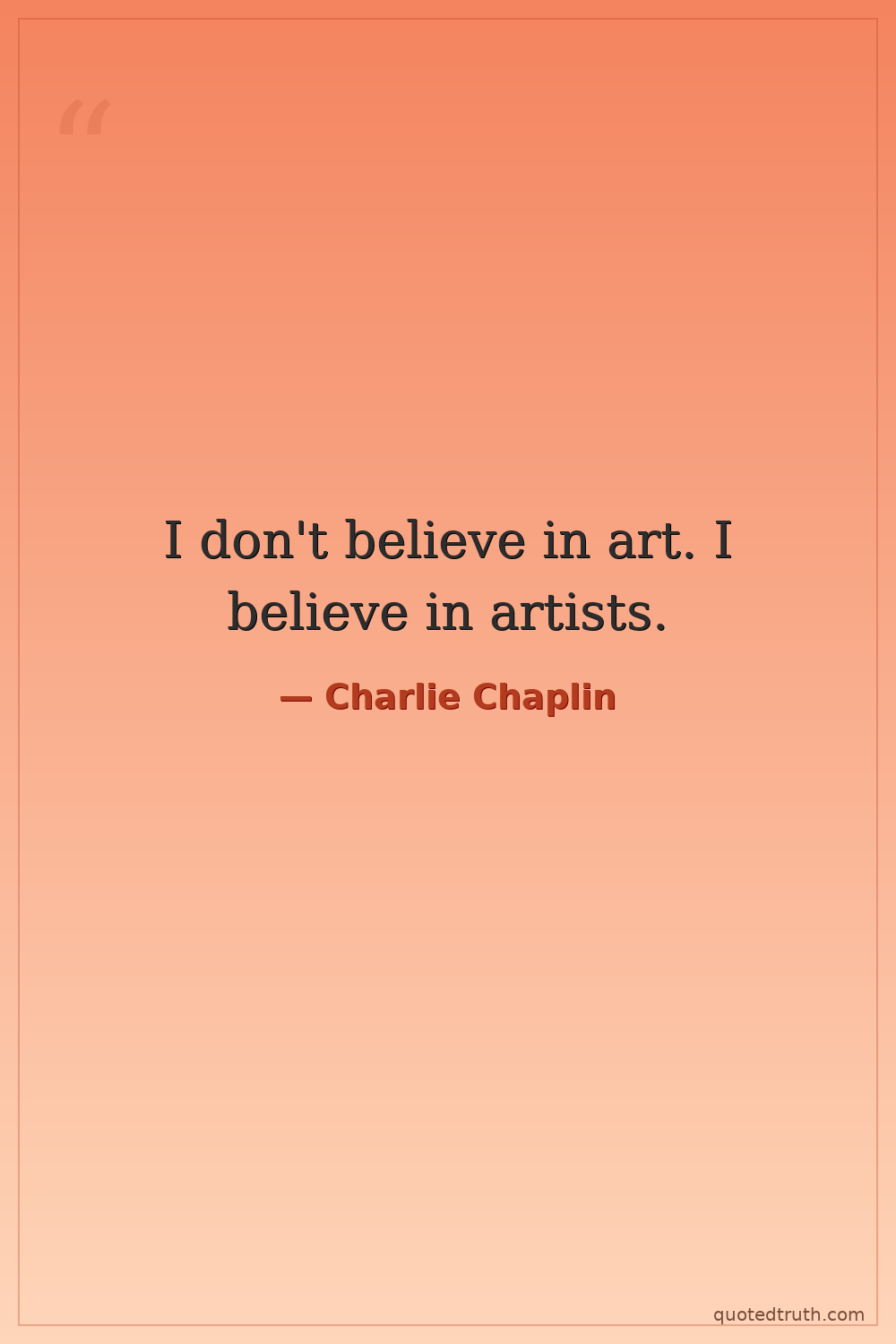 I don't believe in art. I believe in artists.