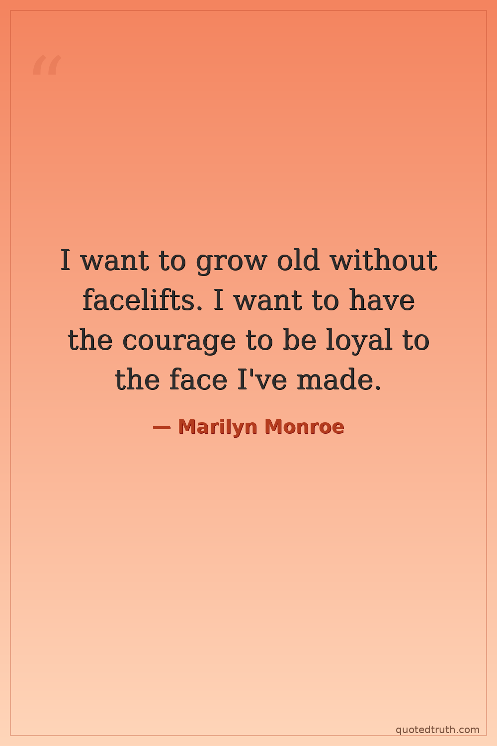I want to grow old without facelifts. I want to have the courage to be loyal to the face I've made.