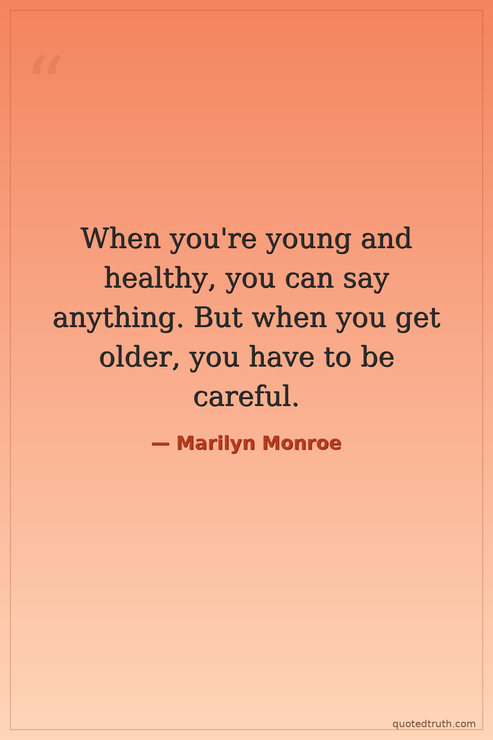 When you're young and healthy, you can say anything. But when you get older, you have to be careful.