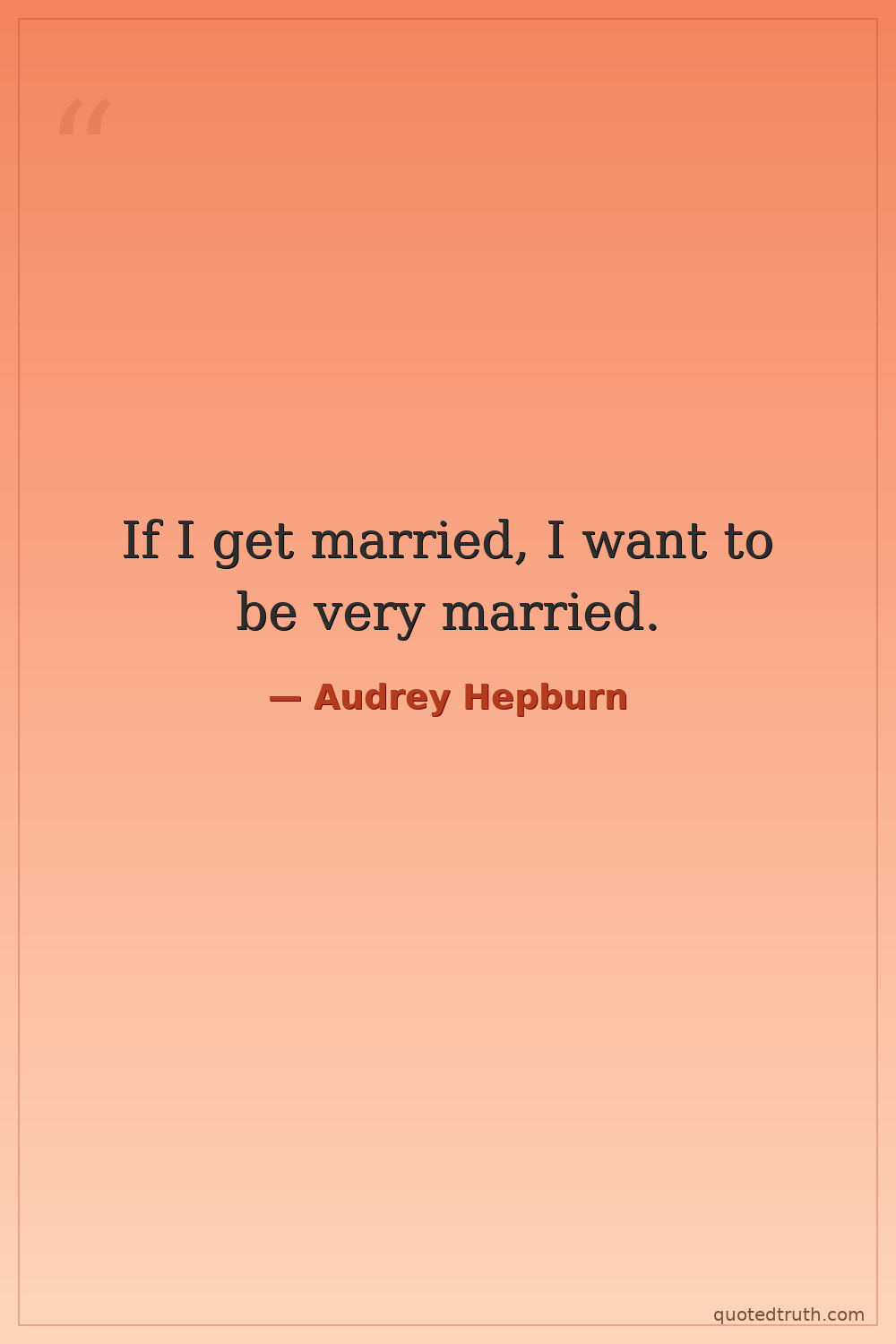 If I get married, I want to be very married.