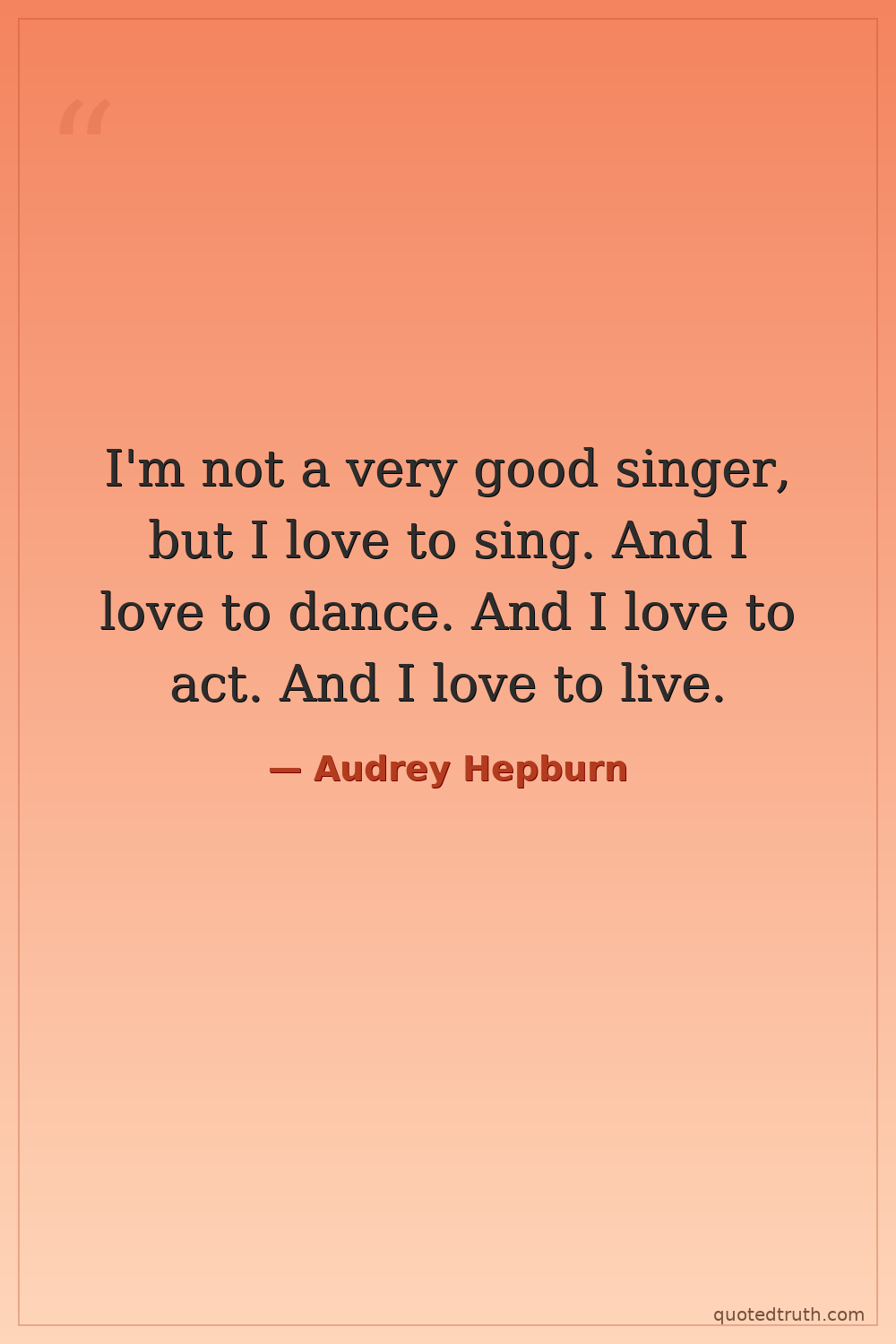 I'm not a very good singer, but I love to sing. And I love to dance. And I love to act. And I love to live.