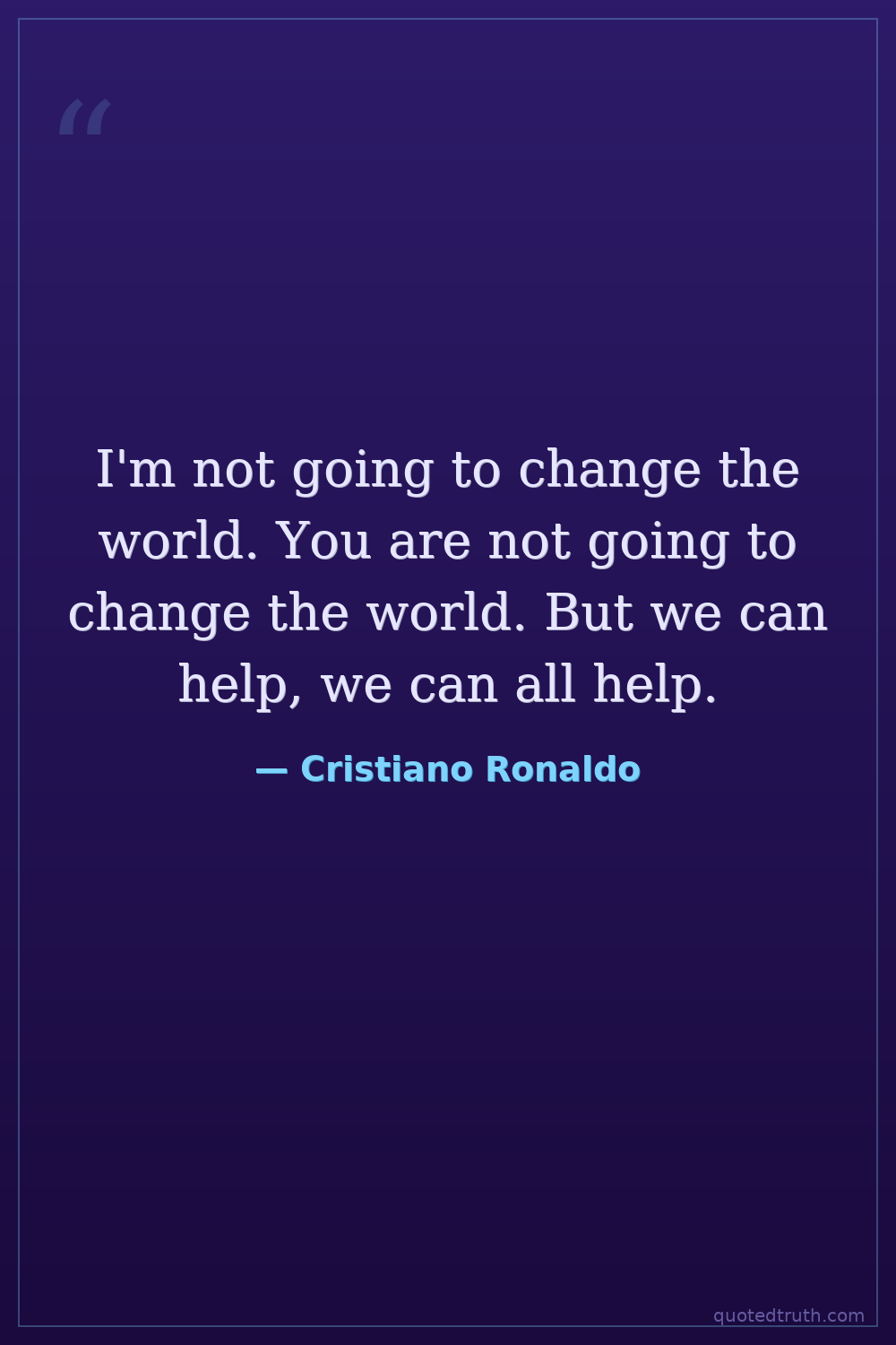 I'm not going to change the world. You are not going to change the world. But we can help, we can all help.