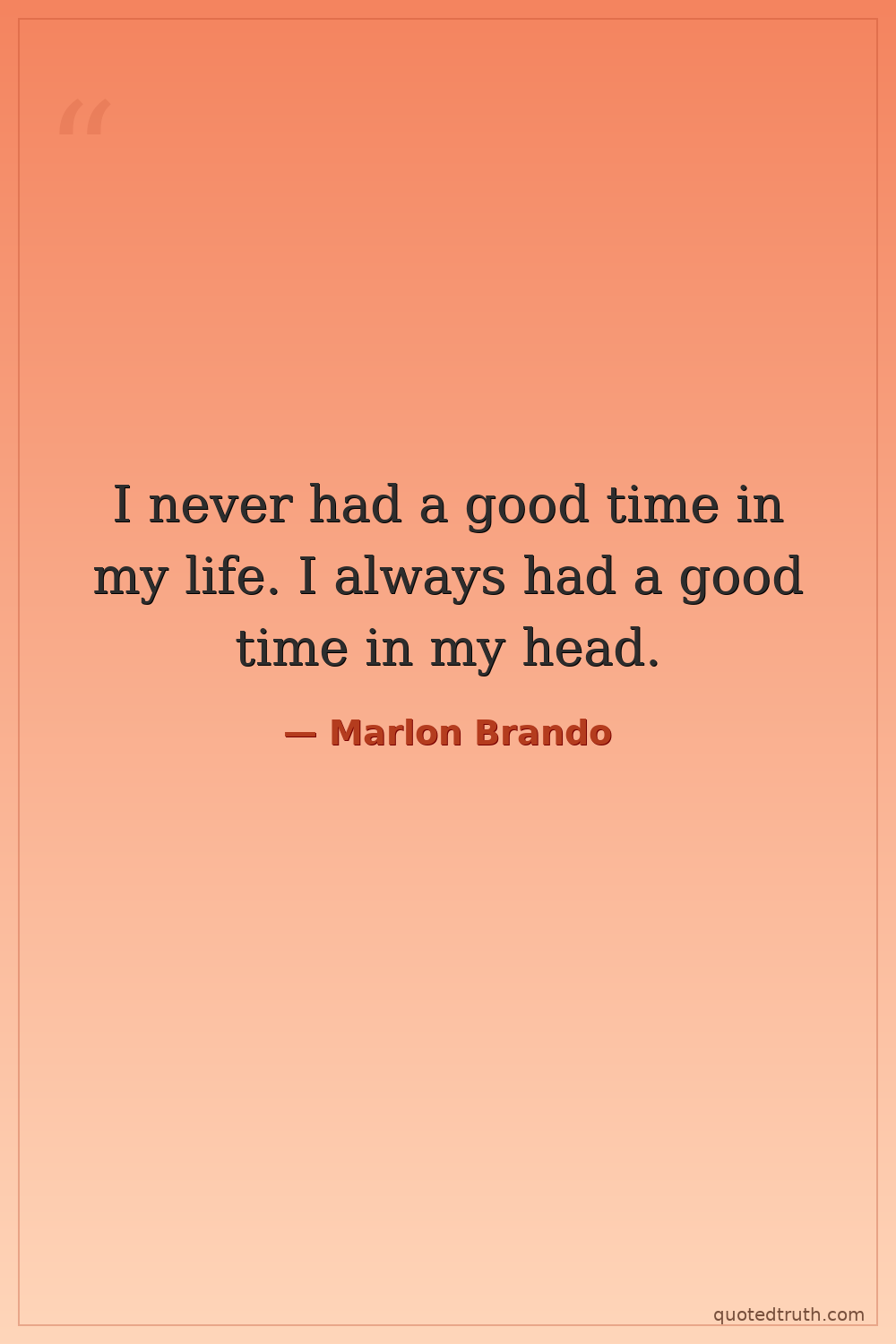 I never had a good time in my life. I always had a good time in my head.