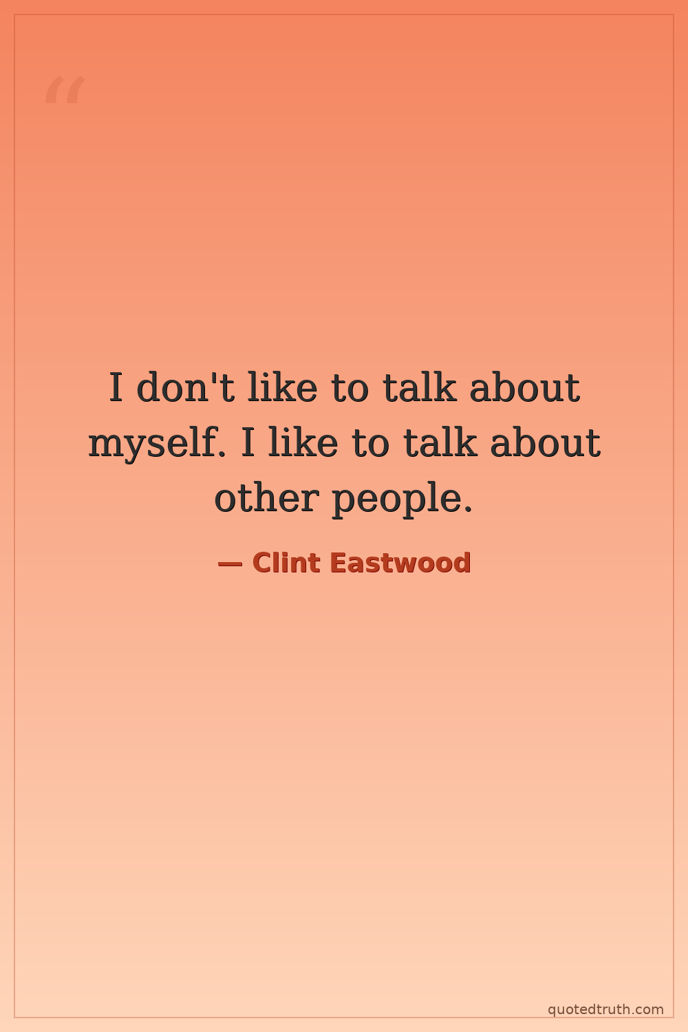 I don't like to talk about myself. I like to talk about other people.
