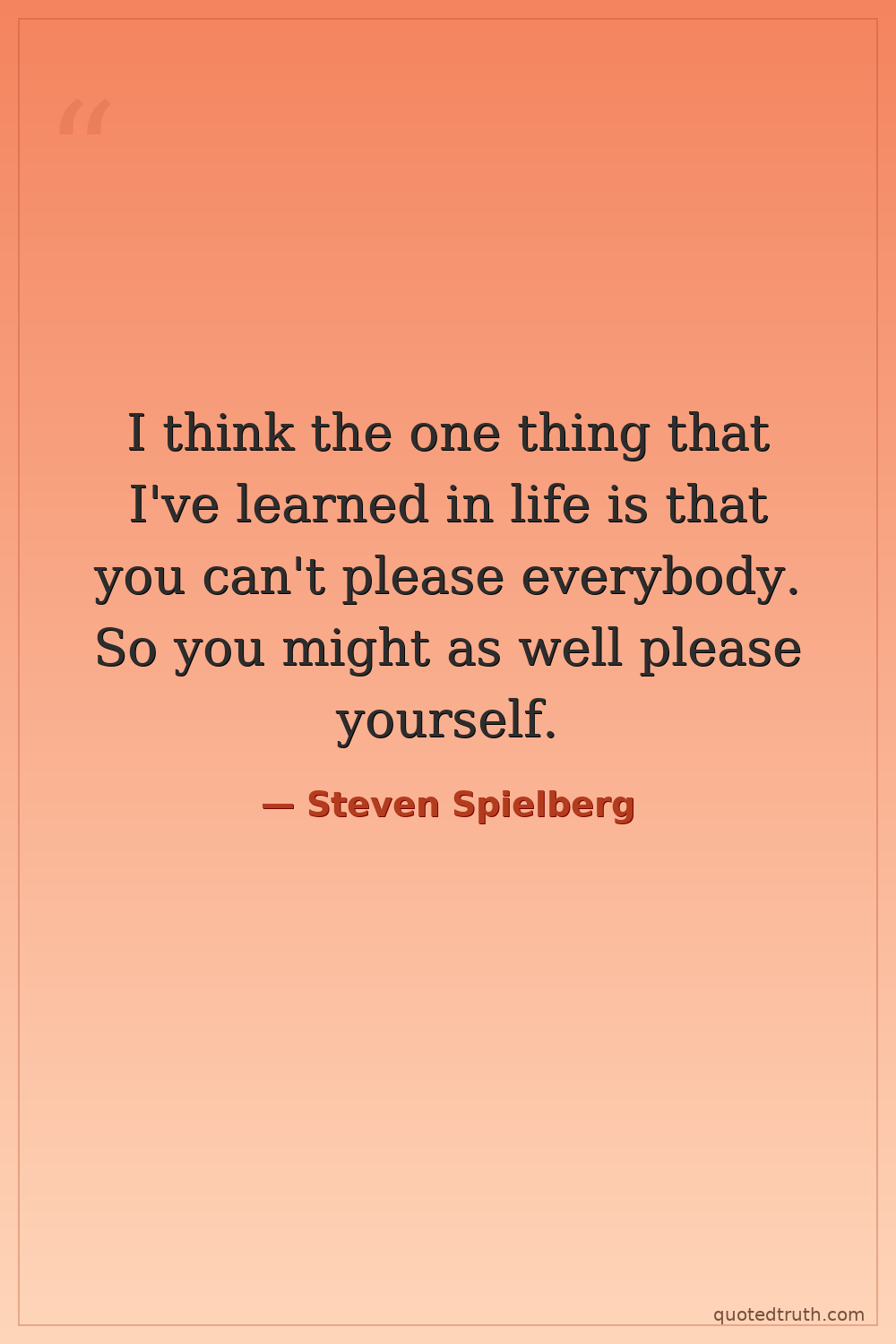 I think the one thing that I've learned in life is that you can't please everybody. So you might as well please yourself.
