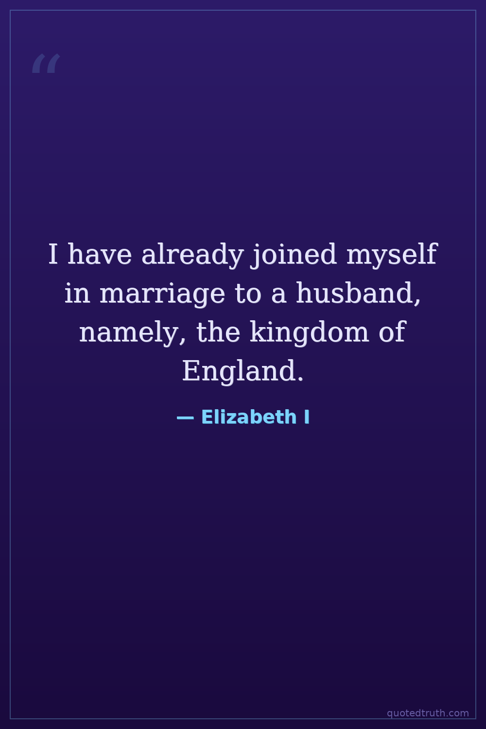 I have already joined myself in marriage to a husband, namely, the kingdom of England.