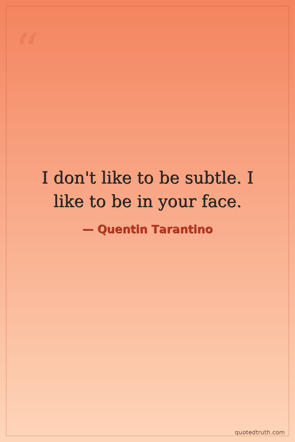 I don't like to be subtle. I like to be in your face.