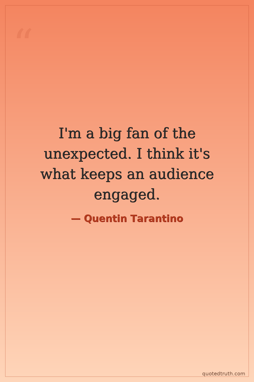 I'm a big fan of the unexpected. I think it's what keeps an audience engaged.