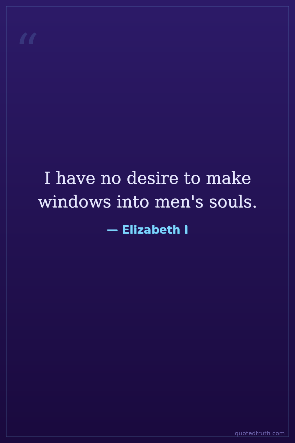 Elizabeth I — "I have no desire to make windows into men's souls."