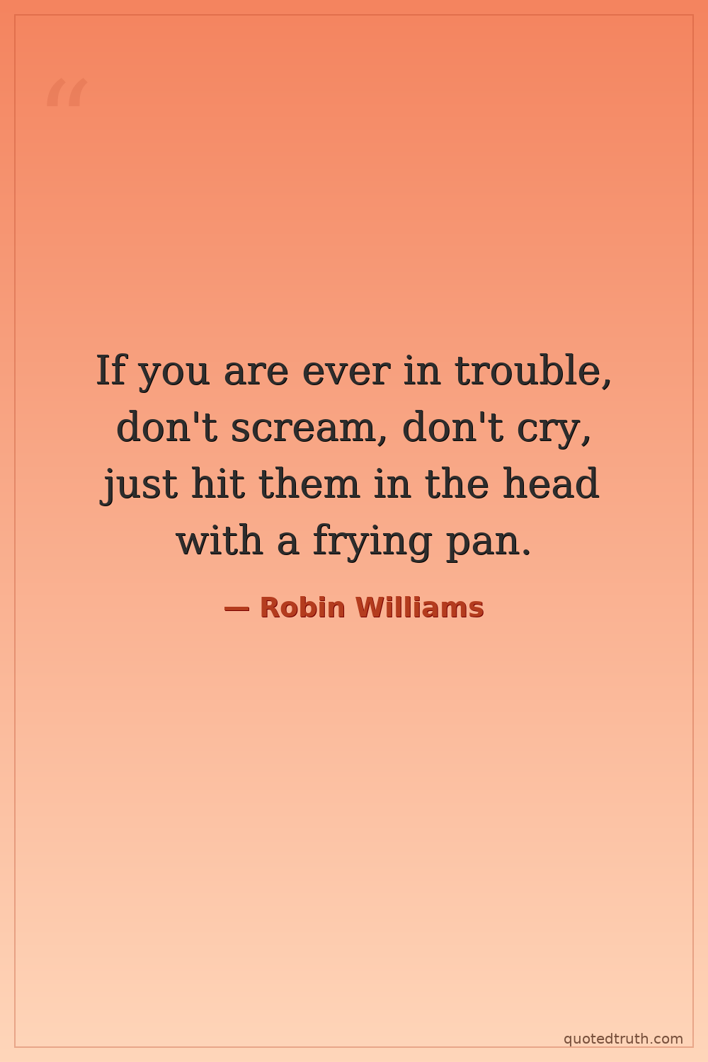If you are ever in trouble, don't scream, don't cry, just hit them in the head with a frying pan.