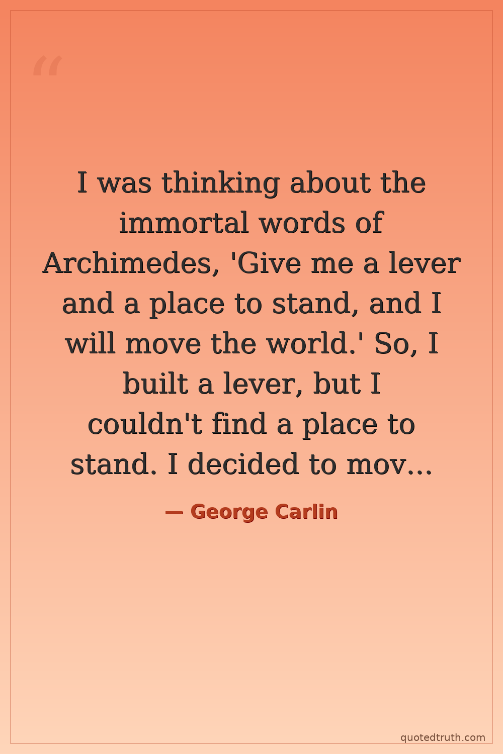 I was thinking about the immortal words of Archimedes, 'Give me a lever and a place to stand, and I will move the world.' So, I built a lever, but I couldn't find a place to stand. I decided to move to a smaller world.