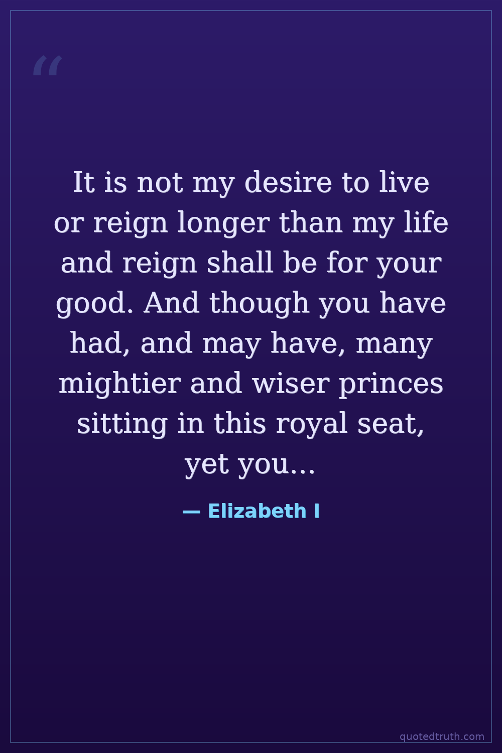 It is not my desire to live or reign longer than my life and reign shall be for your good. And though you have had, and may have, many mightier and wiser princes sitting in this royal seat, yet you never had, nor shall have, any that will love you better.
