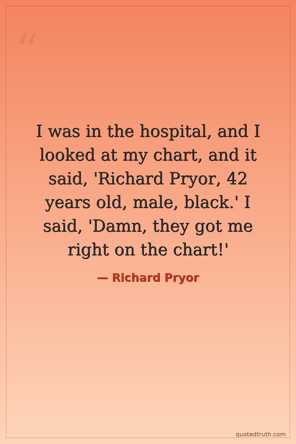 I was in the hospital, and I looked at my chart, and it said, 'Richard Pryor, 42 years old, male, black.' I said, 'Damn, they got me right on the chart!'