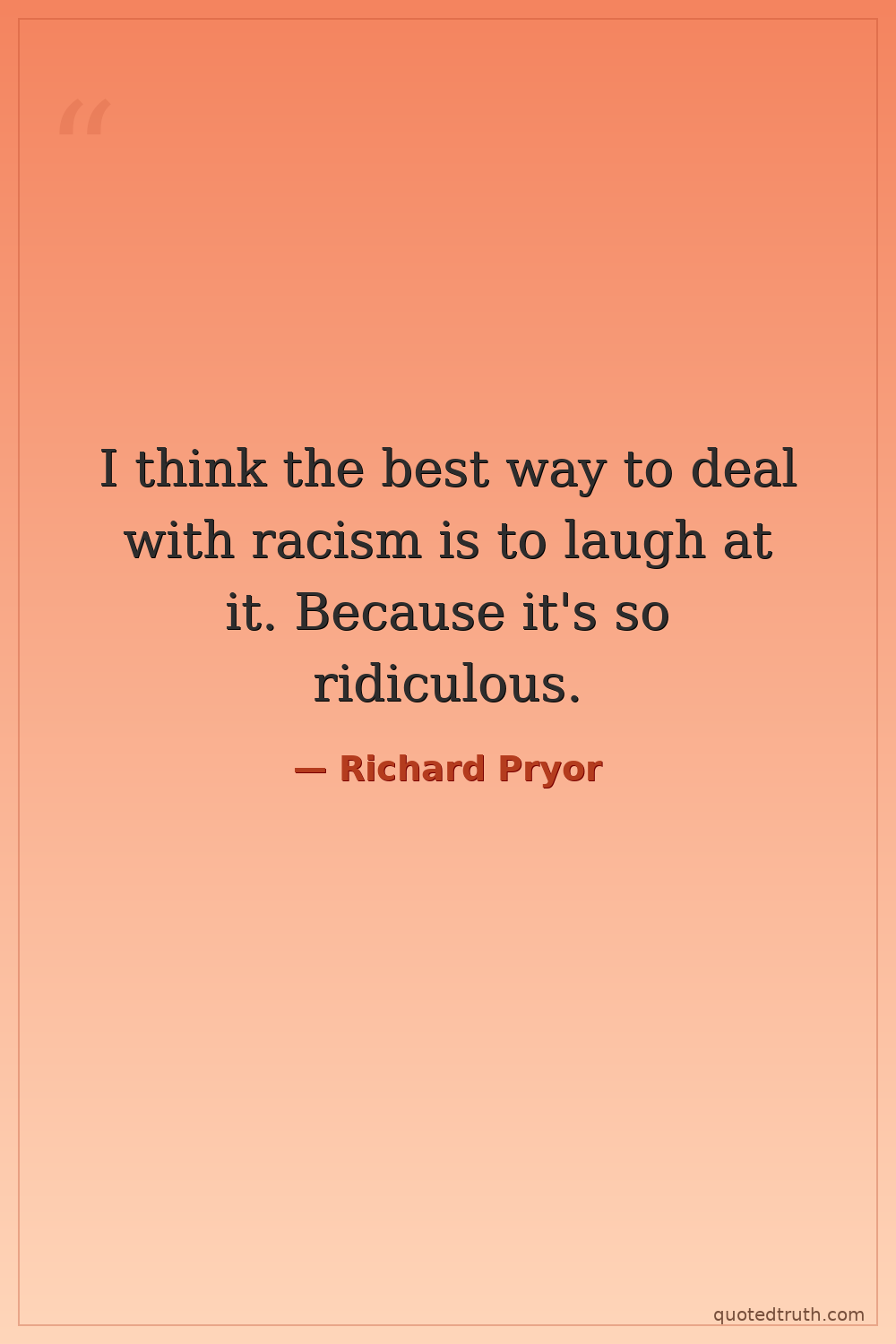 I think the best way to deal with racism is to laugh at it. Because it's so ridiculous.
