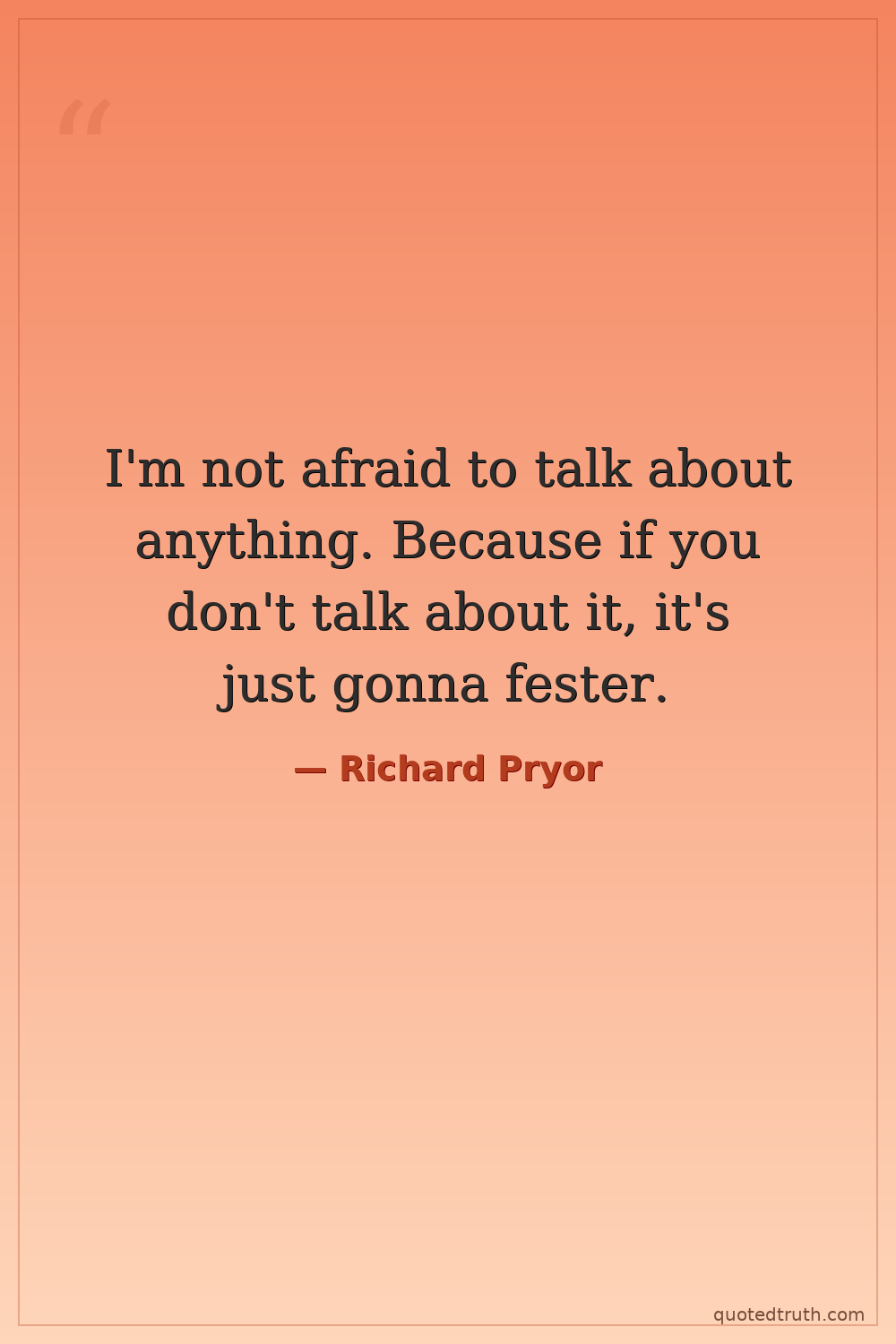 I'm not afraid to talk about anything. Because if you don't talk about it, it's just gonna fester.