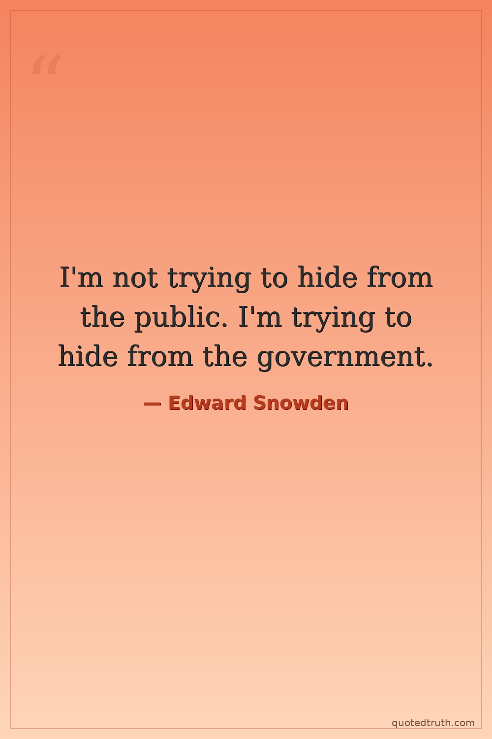 I'm not trying to hide from the public. I'm trying to hide from the government.