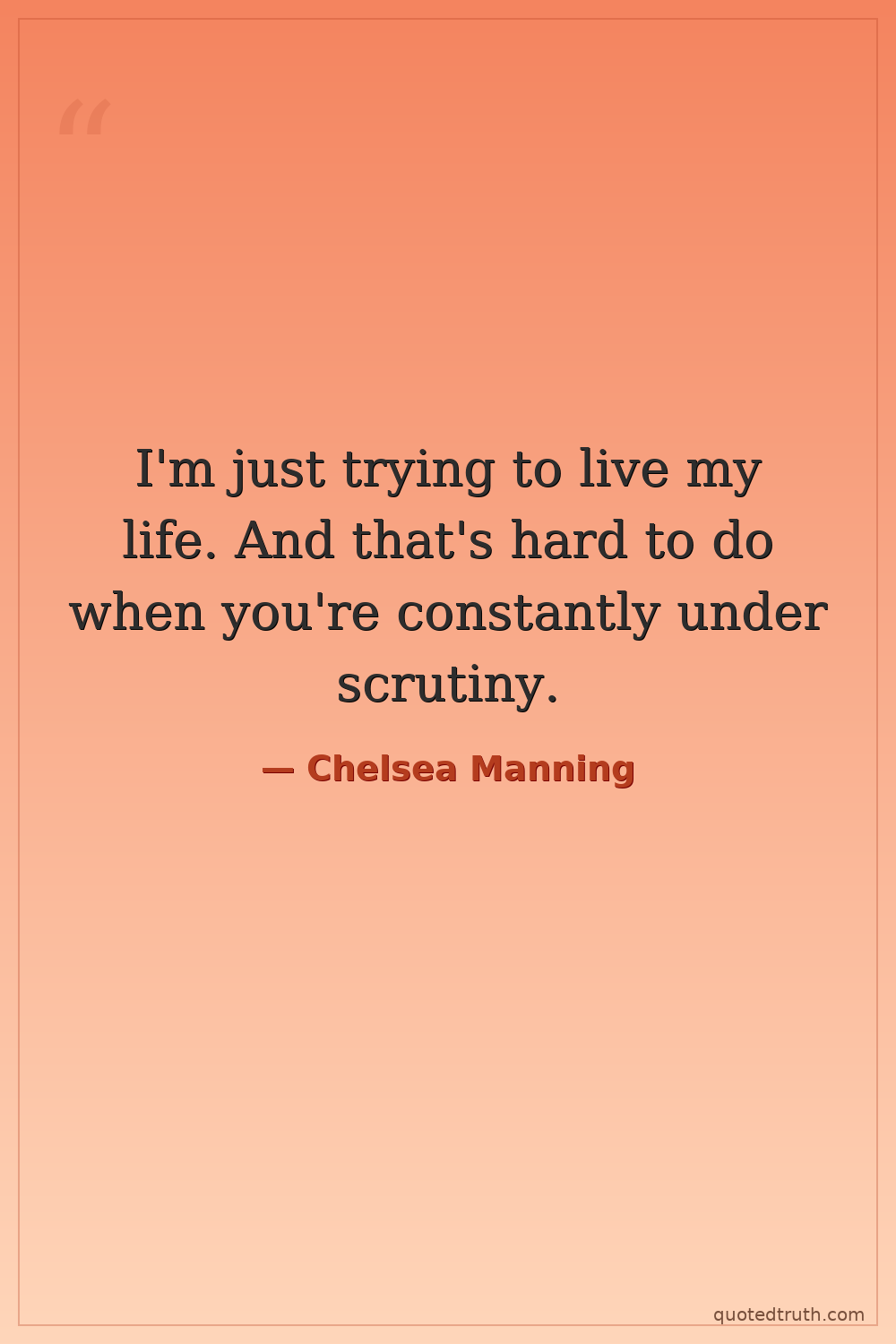I'm just trying to live my life. And that's hard to do when you're constantly under scrutiny.