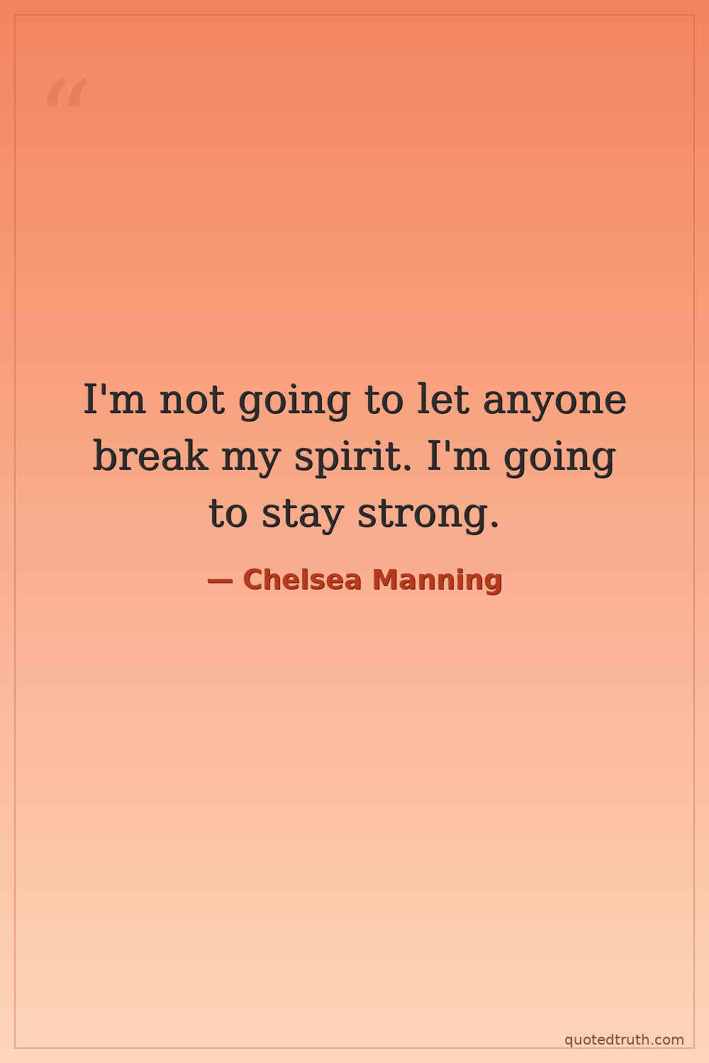 I'm not going to let anyone break my spirit. I'm going to stay strong.