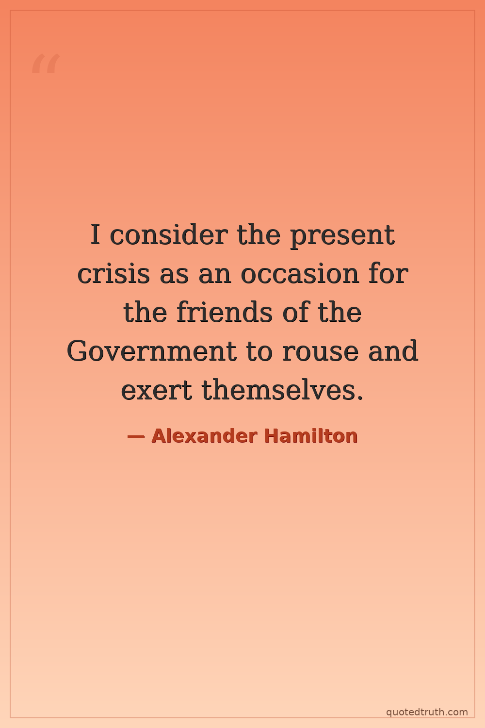I consider the present crisis as an occasion for the friends of the Government to rouse and exert themselves.